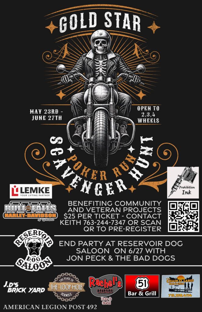Here it is. This years Poker Run. Scan the QR code to get signed up, get instructions, sign the waiver and pay. Reminder that it does not start until Memorial Day weekend, but you can pre – register. We will get an email confirmation. The stops DO NOT have their QR code cards yet, but they will have them by the time the event starts. We will get notified of your activity each time you scan a QR code. Most important DON’T FORGET the Scavenger Hunt part for the Vets memorials. End Party at Reservoir Dog Saloon. Extra events will be added through out the event time frame, group rides to sponsors, and of course the End Party Ride to 64 North bar and grill, as well as Cassel bar and grill, then on to The Dog for card draws, raffles, food,and live music!!! We will also have T-Shirt sales available the day of the end party. We have a link to register without the QR code on our Facebook page https://www.facebook.com/groups/718638214479426This is what community looks like. American Legion Riders WI District 8 really stepped up with $501.00. Plus donations from BFHD event today. $1500.00 !! This is all going to the tornado victims in Ringle WI from the storms on 4/17/2026Legion Girls Softball is fast approaching. This is the flyer for the season opener in June. Post 492 should not need color guard for this event as Post 10 usually has that covered. Our girls first home game is June 17th at the diamond off of Alta Verde St in Weston. That is west of the High School. Post 492 does color guard for the home games that start at 1830The Blue Star Memorial Marker in Rothschild, Wisconsin, is located at 211 North Grand Avenue, a site dedicated in November 1950 by the River Valley District of the Wisconsin Garden Club Federation. The original location was 411 Grand Ave but was moved in the early 2000’s to it’s current home at the new Rothschild Village Hall. This location is situated along the major corridor of Interstate 39/US Highway 51, which runs through the Village of Rothschild. U.S. HWY 51 is designated as the Korean War Veterans Memorial Highway. Marker Location: 211 North Grand Avenue, Rothschild, WI (dedicated 11/1950). Associated Highway Corridor:I-39/US 51 and near State Highway 29. Context: The Blue Star Memorial program honors U.S. Armed Forces veterans To see more click this link about the Veteran’s Memorial Park https://www.hmdb.org/m.asp?m=42923Valentine’s for Vets 2026 Students from Evergreen Elementary created cards for the Veteran’s at King Veterans Home in King Wi. They were delivered on 2/13/26 WHAT ARE VETERANS DOING WHEN THEY SALUTE? You may notice it at a ceremony…During the National Anthem… Or as the flag is raised, lowered, or carried past in quiet dignity. A veteran brings their hand to their brow in a salute. For many years, tradition and law limited the hand salute to those in uniform. Veterans who were no longer serving—and not wearing an organizational uniform—were expected to stand at attention with the right hand over the heart, honoring the moment in respectful silence. That changed in 2008. That year, federal law updated the U.S. Flag Code to allow veterans and active-duty service members who are out of uniform to render a military salute during the raising, lowering, or passing of the American flag. Later that same year, this authorization was extended to include the National Anthem. So when you see a veteran salute today, they are exercising a hard-earned privilege. They are honoring the flag, fallen friends, shared sacrifice, and a lifetime of service. Because that salute is not just a gesture. It is a right restored. And a promise remembered. It’s a privilege. One earned, and never forgotten. My wife and I will deliver the cards to Kings Veteran’s home on February 13thAccording to a Jan. 12 news release from The National Desert Storm Memorial Association, the Desert Storm Memorial, built and designed by Stump, will be dedicated at 11 a.m. on Oct. 24 in Washington, D.C. On this day in 1944, Congress passed the GI Bill of Rights, initially proposed by the American Legion. Also known as the Servicemen’s Readjustment Act of 1944, this groundbreaking legislation aimed to facilitate the demobilization of nearly 16 million American servicemen and women. Over 50 percent of honorably discharged veterans utilized the education benefits, leading to a surge in postwar college and vocational school attendance. The GI Bill’s home loan provisions provided over 2 million home loans and addressed the severe housing shortage as veterans returned home to marry and start families. “The GI Bill changed the lives of millions by replacing old roadblocks with paths of opportunity.” #GIBill#History#WWIIDid You Know? American Legion Post 492 has one of only 4 Andrew Chernak Gold Star Mothers Statues in the entire United States. Of the four, we have the only one west of New York . It was the dream of Vietnam Veteran Joe Kelbley to honor the families of the fallen. After a lot of hard work we dedicated the statue on Gold Star Mothers Sunday in 2020. It is at 211 Grand Ave in Rothschild Wi at Post 492 Veterans Park. Sadly Joe passed away in 2021 – but he got to see his dream fulfilled. To see more of Andrews work click on this link. : https://andrewchernaksculptures.com/While the Never Forgotten Honor Flight is right now getting through our Veterans From Dec 7th 1941 to May 7th 1975 ( the end of the Vietnam War). They will look at adding other era Veterans when as many of the remaining Vets get this chance first. If you know a Veteran that has not gone on the flight to Honor Them . Talk to them, they did not have to be “In Country” to be a part of this. Use our Facebook link to see how to reach NFHF.This year the GSPR end party is on June 27th – Ride from Bull Falls Harley Davidson in Rothschild – last Stop is at Reservoir Dog saloon on CTY HWY O in Mosinee for raffles, food, live music by Derek Jones and the 50 South and a party On Dec 17th 2025 Post 